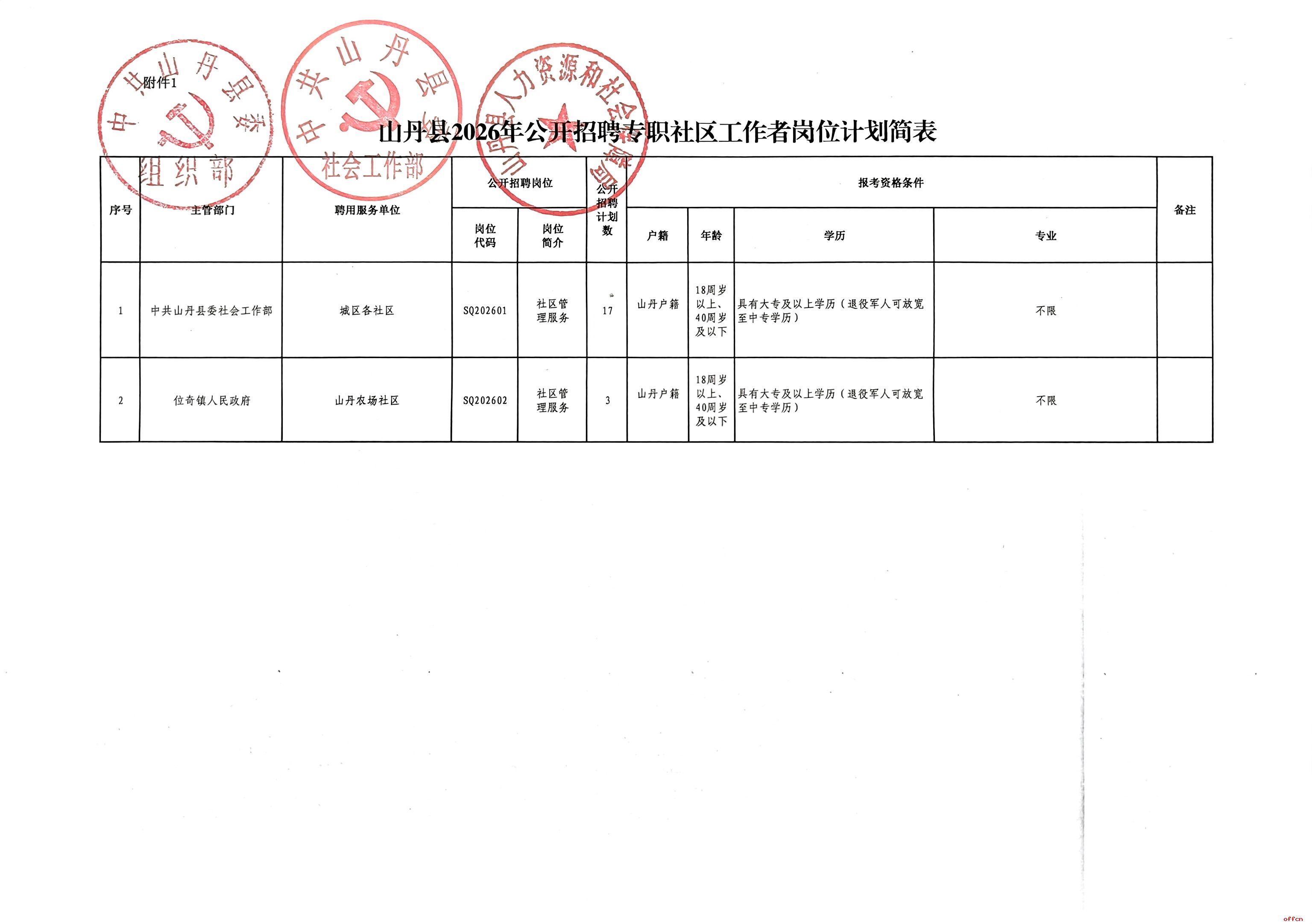 1.《山丹县2026年公开招聘专职社区工作者岗位计划简表》