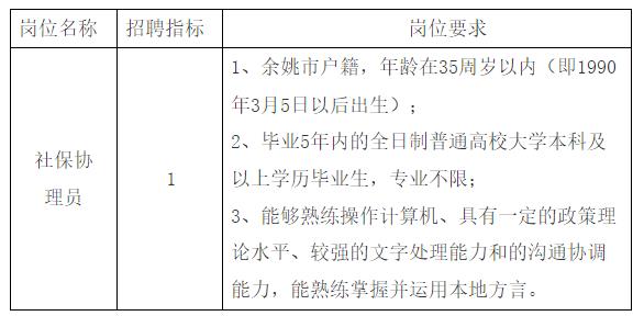 因工作需要,经研究决定,余姚市阳明街道办事处面向社会公开招聘编外工作人员1名,从事社保协理工作,现将有关招聘条件及要求公告如下: