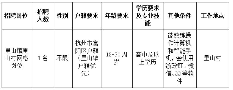 原标题:杭州市富阳区里山镇网格岗位招聘公告