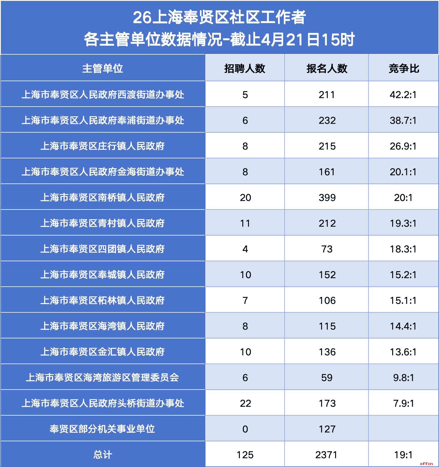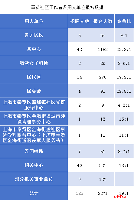 西渡街道以42.2:1的竞争比登顶主管单位“内卷榜”,紧随其后的奉浦街道(38.7:1)同样激烈。究其原因: