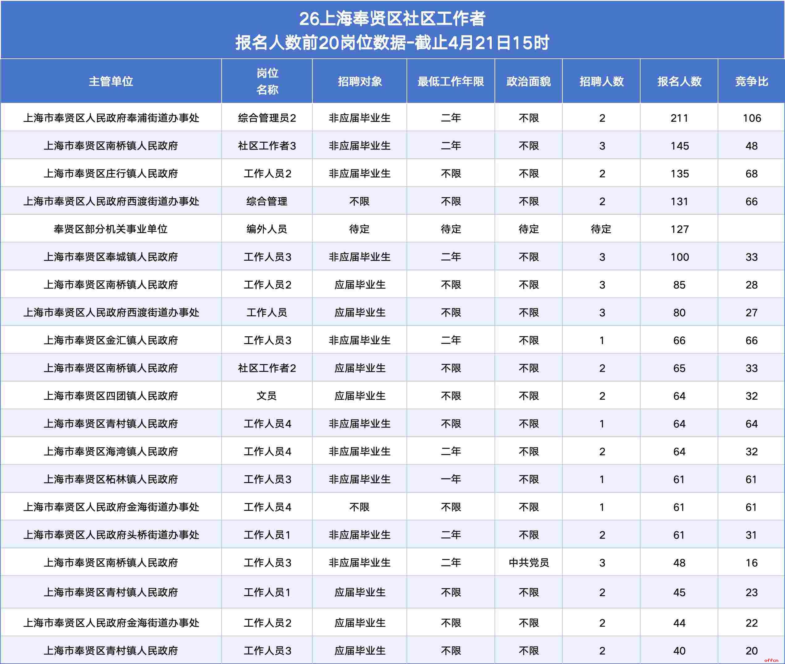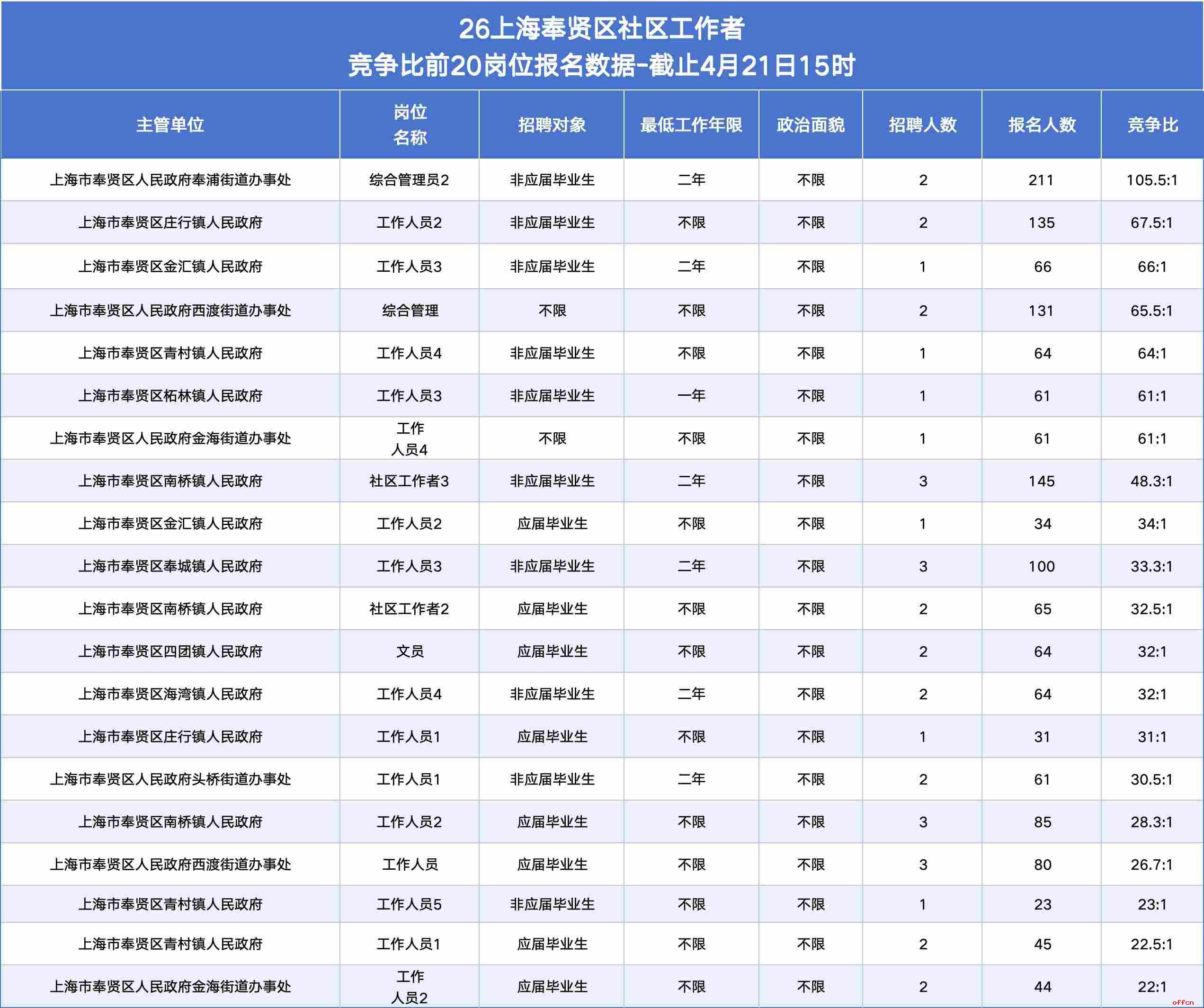 1. 报名人数最多 & 竞争比最高:奉浦街道“综合管理员2”