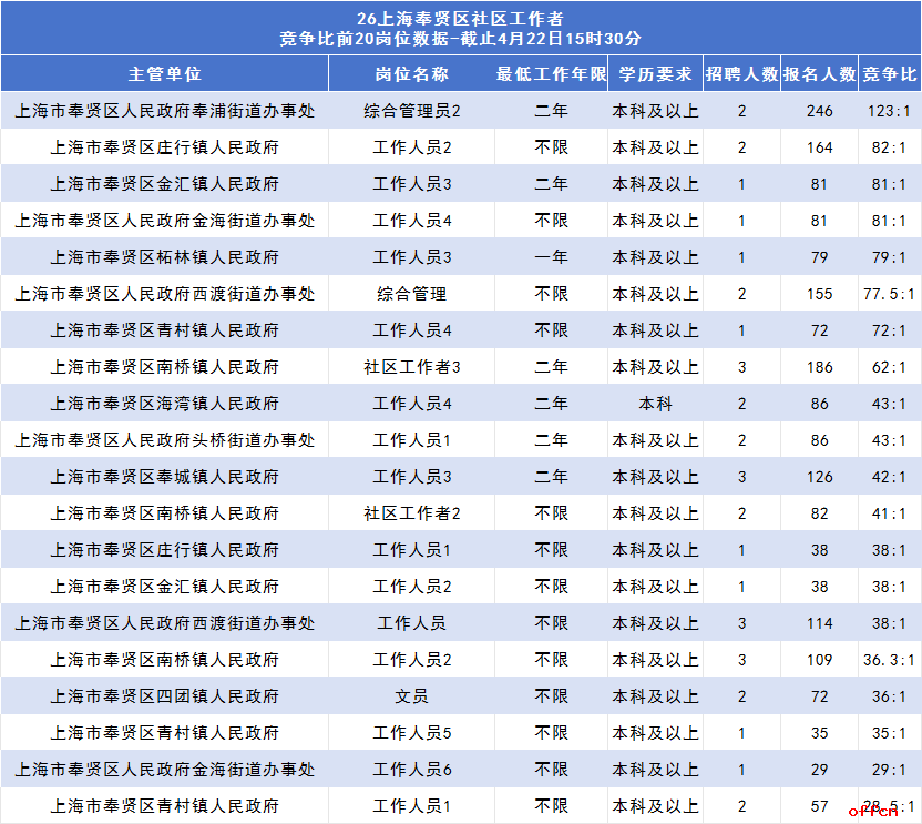 1. 报名人数最多 & 竞争比最高:奉浦街道“综合管理员2”